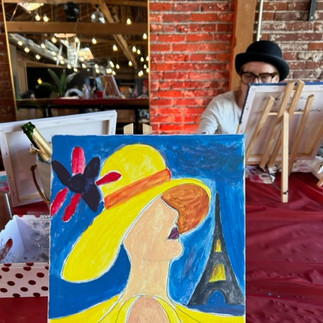 You will paint a French Scene or bring the painting you want to work on. Mariette will guide you and have also pre-sketched Canvas. Miss Valerie will present a French Moment and mini-guide book on different topics: like, The French Beret Kit: the influence in society and fashion from 1920 to now-days, or she introduced for example last Valentine: a French Survival Kit for Valentine.